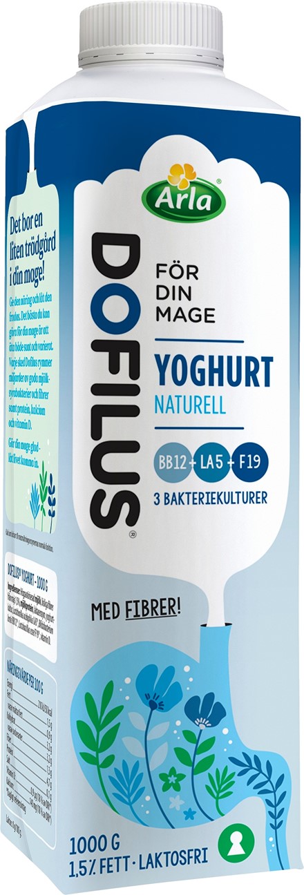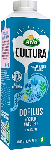 Arla Cultura® Dofilus är en krämig yoghurt som är fermenterad med en unik kombination av bakteriekulturerna Bifidobacterium lactis BB-12®, Lactobacillus acidophilus LA-5® och Lactobacillus casei F-19®. Den är en naturlig källa till kalcium som bidrar till matsmältningsenzymernas normala funktion. Det bästa du kan göra för din mage är att äta sunt och varierat samt ha en hälsosam livsstil. Passar perfekt till frukost eller mellanmål precis som den är eller med müsli, flingor, frukt eller bär.