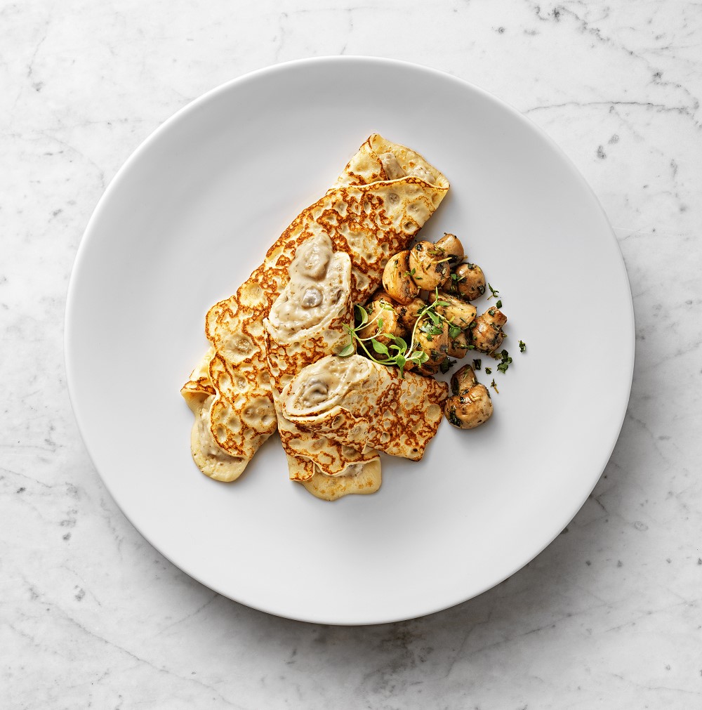 Fantastiskt goda crêpes fyllda med champinjoner. Dessa fylliga crêpes blir snabbt en favorit hos de flesta, och fungerar lika bra som lunch, middag och kvällsmat. De kan serveras som de är i all sin enkelhet, men blir lite extra goda när de serveras med en fräsch och frisk sallad. Dessa crêpes är tillagade av svenska råvaror och producerade i Laholm i Sverige.