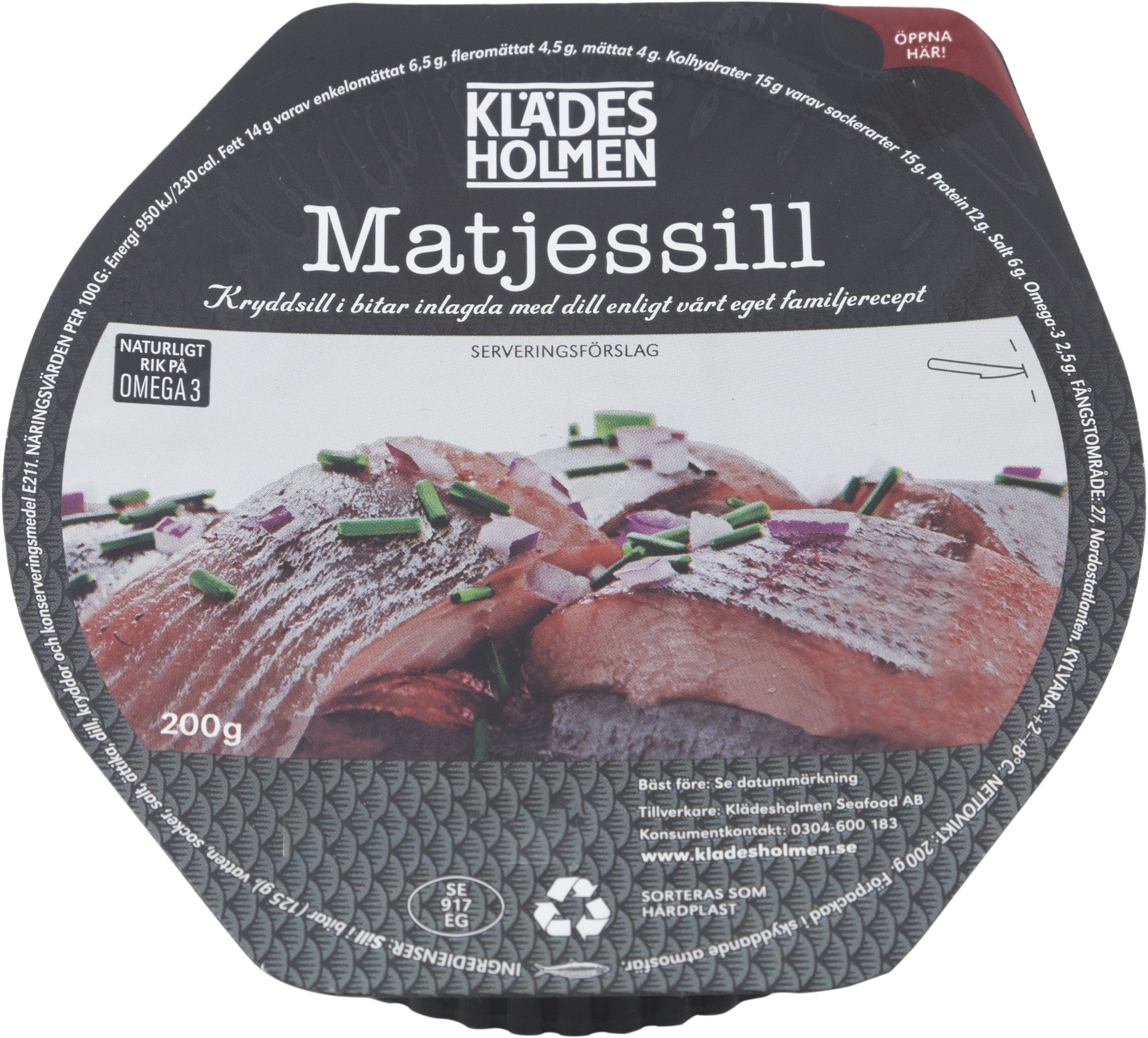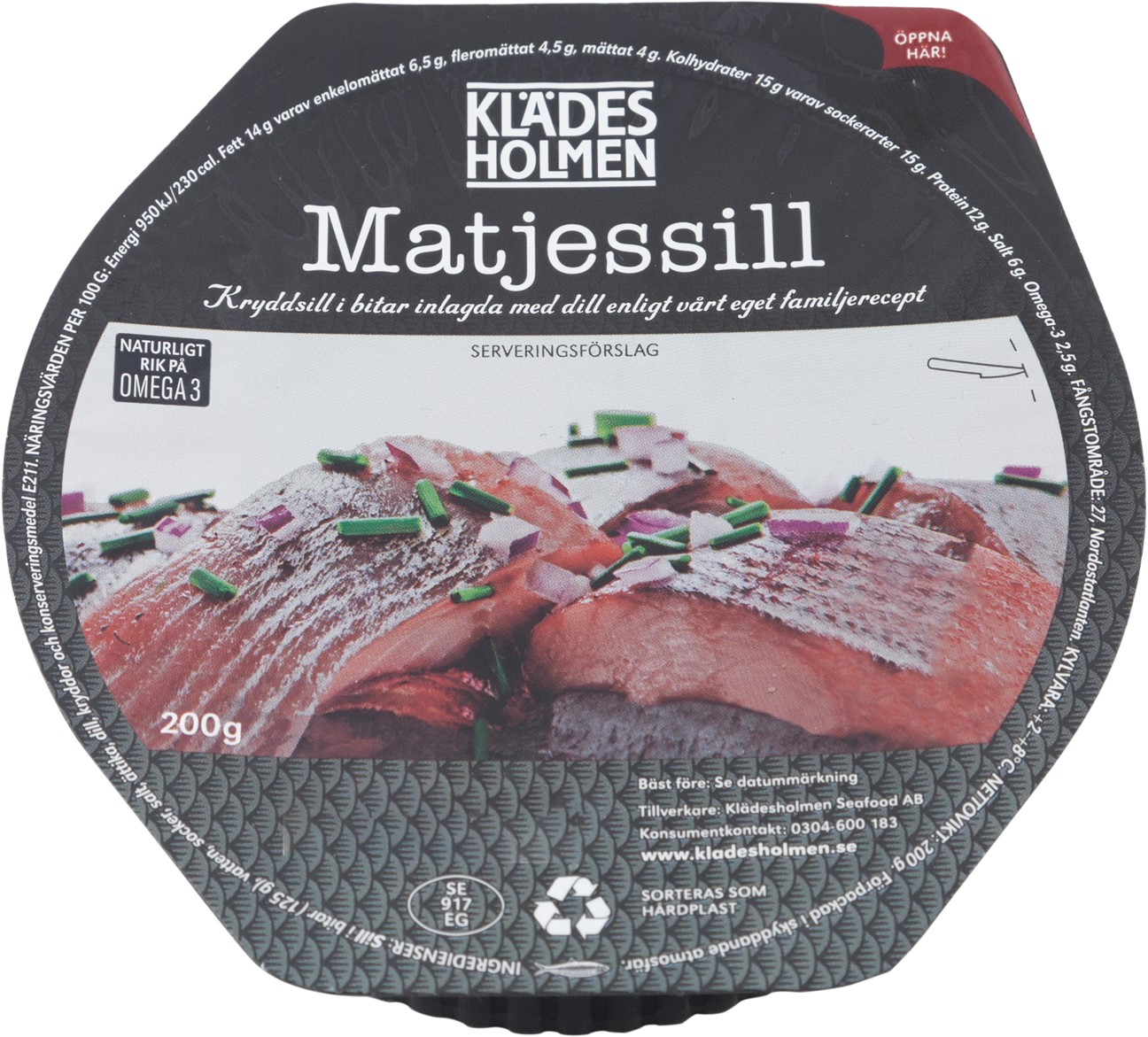 | Marknadsbudskap: | Klädesholmen Matjessill i bitar 200g Plastförpackning. |