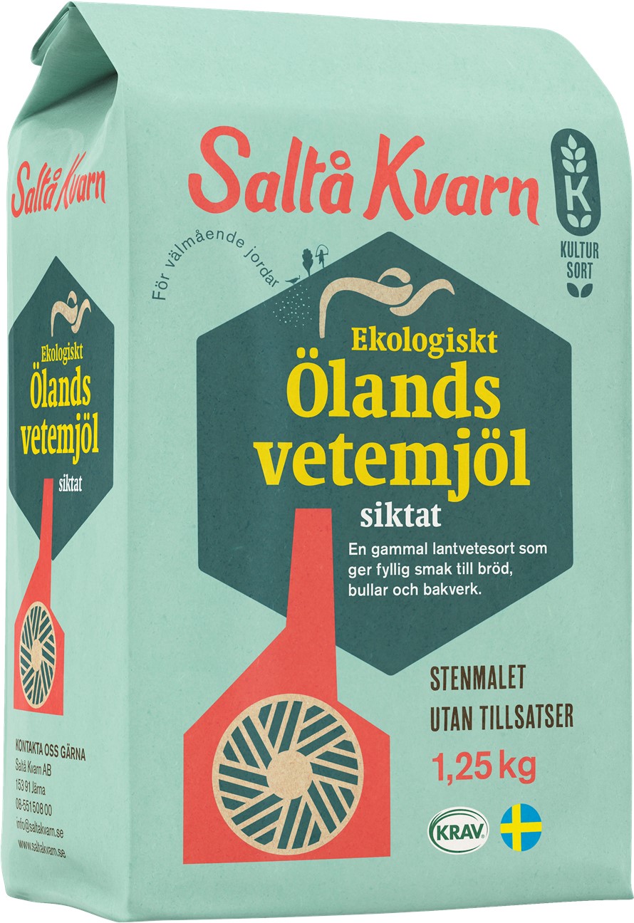ölandsvete, ölandsvetemjöl, ölandssikt, vetemjöl, kultursort, kulturspannmål, eko, ekologiskt, saltå kvarn, KRAV, mjöl, stenmalet, utan askorbinsyra, utan tillsatser, sverige, svenskt, odlat i Sverige