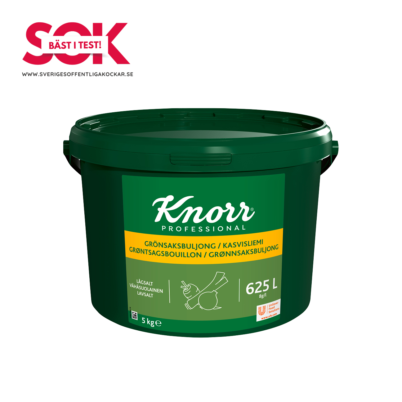 | Marknadsbudskap: | Knorr Grönsaksbuljong Lågsalt är utvecklad med precision och baserad på nio noggrant utvalda grönsaker. Den erbjuder en balanserad smakprofil där rotfrukter, lök och umami samverkar för att ge en rund och harmonisk smak. Grönsakerna är hållbart odlade enligt SAC, buljongen är EVU-certifierad för veganer och godkänd enligt UHM Biodiversitet 11539 – vilket säkerställer höga krav på miljö, etik och biologisk mångfald. Buljongen passar utmärkt som bas i soppor, såser och grytor, eller som krydda för att fördjupa och avrunda smaker. Genom att följa doseringsanvisningarna och kombinera buljongpulver med salt får du kontroll över både smak och salt innehåll – en viktig aspekt för hälsa och köksekonomi. Färdig buljong innehåller endast 0,3 % salt. Ett paket på 5 kg ger 625 liter färdig buljong. "Bäst i Test" enligt SOK. Läs mer på www. sverigesoffentligakockar.se Tänk på miljön! Våra plasthinkar är gjorda av återvunnen plast, PCR. Genom att välja återvunnen plast minskar du plastens miljöpåverkan samt stödjer en cirkulär ekonomi. |